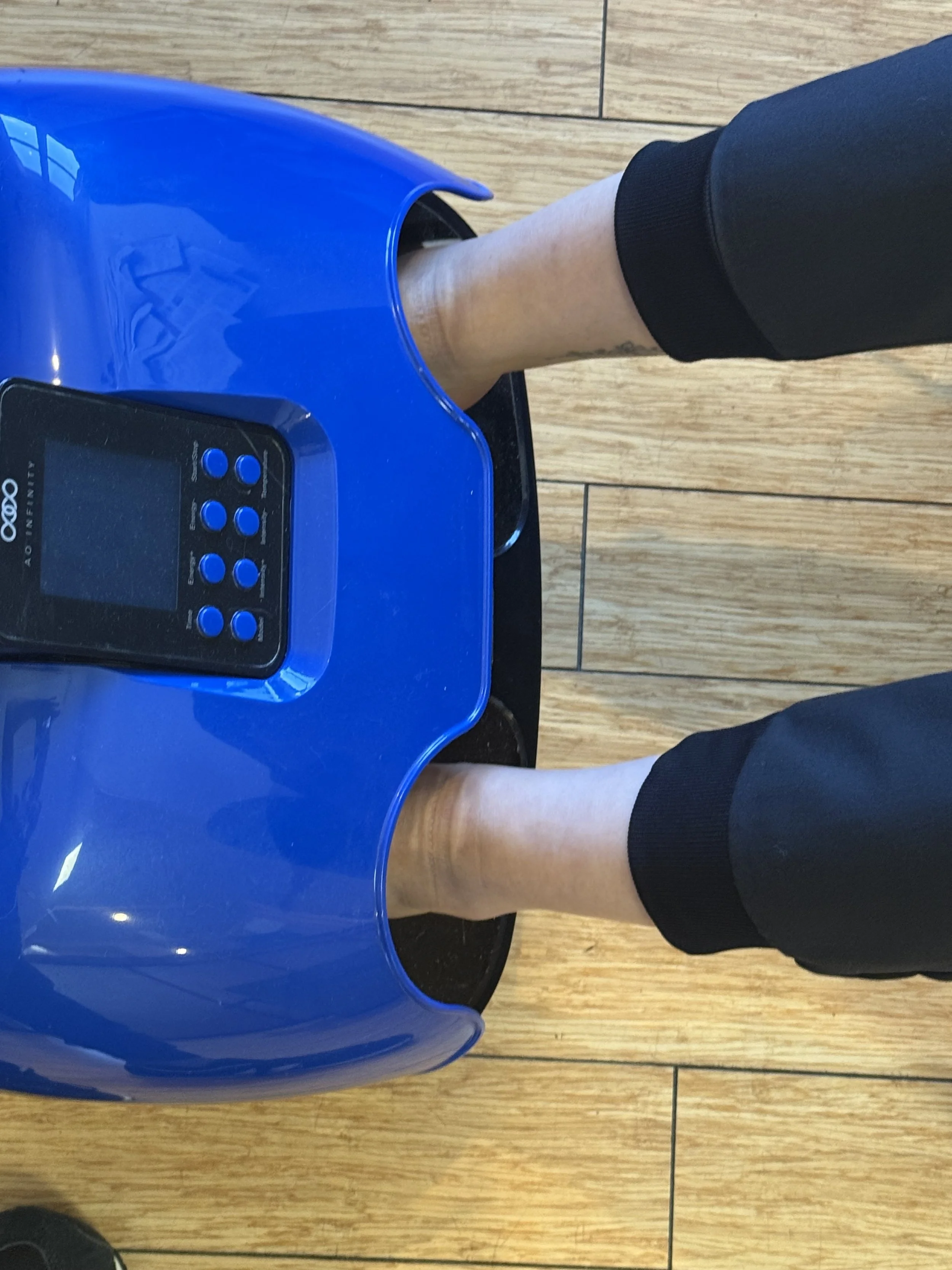 The AO Infinity Foot Detox uses Radio Frequency to raise the body’s internal temperature. This device circulates Radio Frequency vibration energy through the soles of the feet, moving up to the rest of the body. When the heat accelerates your metabolism, toxins, and waste are broken down and sent to the liver for elimination.